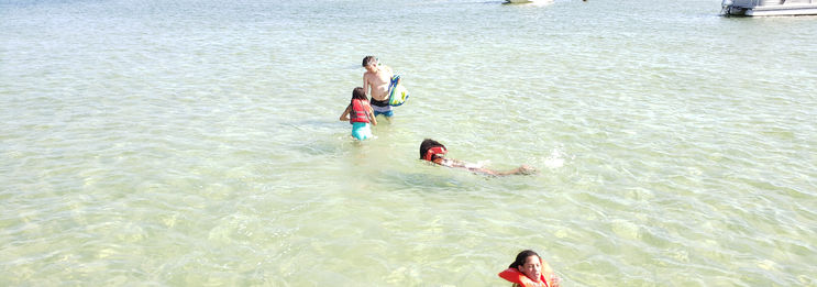 Where we dropped anchor, the shore formed a semi crescent and was the "thinnest" point of the island. Just about 100 yards across was the Gulf of Mexico, allowing us to easily walk over the sand dunes and reach the other shore and swim in the Gulf as well!